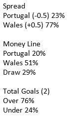 Если Уэльс сыграет с португальцами аналогично как с бельгийцами, то Уэльс может пройти в финал... Но в финале немцы или итальянцы - их им точно не пройти. Да и не будут они, скорее всего упираться в финале, они свою программу на ЧЕ перевыполнили. А у португальцев задача простая - не давать контратаковать и начать забивать голы.